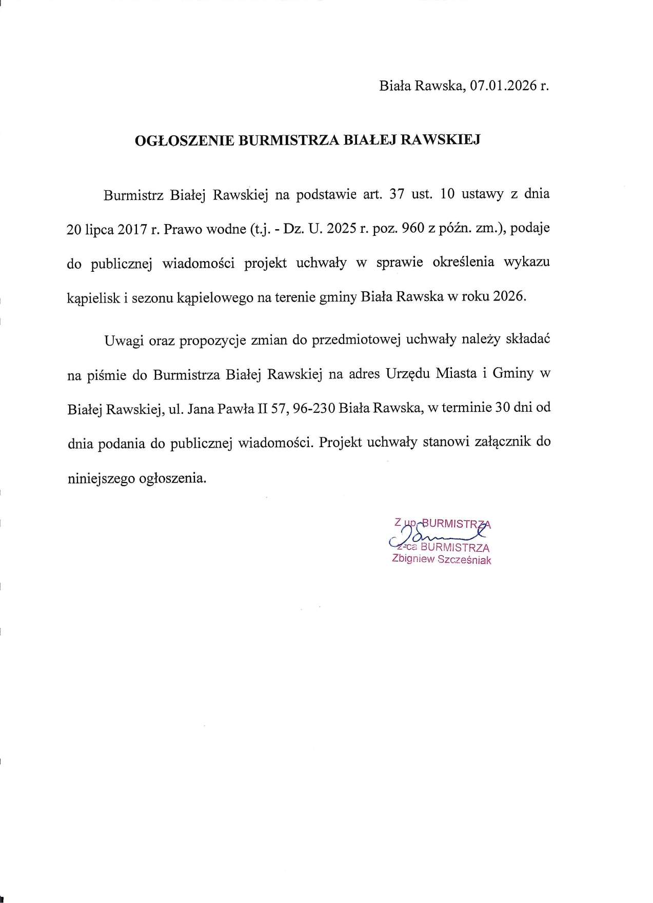 Rafał Jakubczak) - Dodanie załącznika [projekt_uchwaly_w_sprawie_okreslenia_wykazu_kapielisk.pdf] do dokumentu. (Dokument opublikowany)